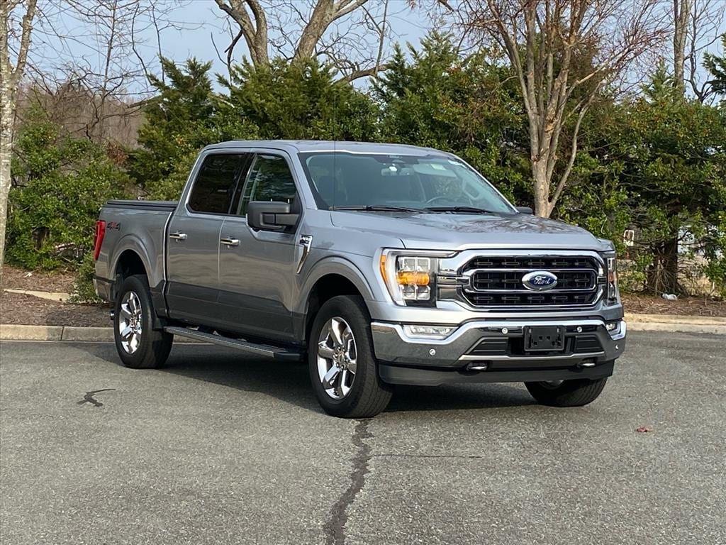 Certified. Silver 2021 Ford F-150 XLT 4WD 10-Speed Automatic 3.5L V6 EcoBoost One Owner, Back up Camera, F-150 XLT, 4D SuperCrew, 3.5L V6 EcoBoost, 10-Speed Automatic, 4WD, Silver, Medium Dark Slate Cloth, 10-Way Power Driver & Passenger Seats, 2-Bar Style Grille w/Chrome 2 Minor Bars, 360 Degree Camera, 4-Wheel Disc Brakes, 6 Speakers, 8" Productivity Screen in Instrument Cluster, ABS brakes, Air Conditioning, Alloy wheels, AM/FM radio, Auto High-beam Headlights, Auto-Dimming Rear-View Mirror, Bumpers: chrome, Chrome Door & Tailgate Handles w/Body-Color Bezel, Chrome Single-Tip Exhaust, Chrome Step Bars, Class IV Trailer Hitch Receiver, Cloth 40/20/40 Front Seat, Connected Built-In Navigation, Delay-off headlights, Driver vanity mirror, Dual front impact airbags, Dual front side impact airbags, Dual Zone Automatic Temperature Control, Electronic Locking w/3.31 Axle Ratio, Electronic Stability Control, Emergency communication system: SYNC 4 911 Assist, Equipment Group 302A High, Evasive Steering Assist, Exterior Parking Camera Rear, Ford Co-Pilot360 Assist 2.0, Front anti-roll bar, Front Center Armrest w/Storage, Front fog lights, Front reading lights, Front wheel independent suspension, Fully automatic headlights, Heated door mirrors, Heated Front Seats, Illuminated entry, Integrated Trailer Brake Controller, Intelligent Access w/Push Button Start, Intelligent Adaptive Cruise Control w/Stop & Go, Interior Work Surface, Intersection Assist, Leather-Wrapped Steering Wheel, LED Box Lighting w/Zone Lighting, LED Reflector Headlamps, LED Sideview Mirror Spotlights, Low tire pressure warning, Occupant sensing airbag, Onboard 400W Outlet, Overhead airbag, Overhead console, Panic alarm, Passenger vanity mirror, Power door mirrors, Power Glass Heated Sideview Mirrors, Power steering, Power windows, Power-Sliding Rear Window, Pro Power Onboard - 2KW, Pro Trailer Backup Assist, Radio data system, Radio: AM/FM SiriusXM w/360L, Radio: AM/FM Stereo w/6 Speakers, Rear reading lights, Rear step bumper, Rear Under-Seat Storage, Rear window defroster, Remote keyless entry, Remote Start System w/Remote Tailgate Release, SecuriCode Drivers Side Keyless-Entry Keypad, Security system, Speed control, Speed Sign Recognition, Speed-sensing steering, Split folding rear seat, Steering wheel mounted audio controls, SYNC 4, SYNC 4 w/Enhanced Voice Recognition, Telescoping steering wheel, Tilt steering wheel, Traction control, Trailer Tow Package, Variably intermittent wipers, Wheels: 17" Silver Painted Aluminum, Wheels: 18" Chrome-Like PVD, Wheels: 20" Chrome-Like PVD, XLT Chrome Appearance Package.