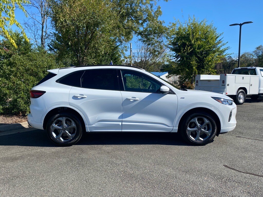 Certified. Oxford White 2023 Ford Escape ST-Line Select AWD 8-Speed Automatic EcoBoost 2.0L I4 GTDi DOHC Turbocharged VCT One Owner, Back up Camera, Escape ST-Line Select, 4D Sport Utility, EcoBoost 2.0L I4 GTDi DOHC Turbocharged VCT, 8-Speed Automatic, AWD, Oxford White, Ebony Cloth, 10-Way Power Driver's Seat, 12.3" Productivity Screen in Instrument Cluster, 2.91 Axle Ratio, 360-Degree Camera w/Split View, 4-Wheel Disc Brakes, 6 Speakers, 6-Way Power Passenger Seat, ABS brakes, Air Conditioning, Alloy wheels, AM/FM radio: SiriusXM, AM/FM Stereo, Auto High-beam Headlights, Automatic temperature control, Body Color Mirrors, Brake assist, Bumpers: body-color, Connected Built-In Navigation, Delay-off headlights, Driver vanity mirror, Dual front impact airbags, Dual front side impact airbags, Electronic Fuel Door Release, Electronic Stability Control, Emergency communication system: SYNC 4 911 Assist, Equipment Group 401A, Exterior Parking Camera Rear, Ford Co-Pilot360 Assist 2.0, FordPass Connect, Four wheel independent suspension, Front anti-roll bar, Front Bucket Seats, Front Center Armrest, Front dual zone A/C, Front fog lights, Front reading lights, Fully automatic headlights, HD Radio, Heated door mirrors, Heated front seats, Heated steering wheel, Heated Vinyl/Cloth Front Sport Contour Bucket Seats, Illuminated entry, Intelligent Adaptive Cruise Control w/Stop-and-Go, Intersection Assist, Knee airbag, Low tire pressure warning, Memory Package, Neutral Towing Capability, Occupant sensing airbag, Outside temperature display, Overhead airbag, Overhead console, Panic alarm, Passenger vanity mirror, Pedestrian Alert Sounder, Power door mirrors, Power driver seat, Power Liftgate, Power steering, Power windows, Radio data system, Radio: B&O Sound System by Bang & Olufsen, Rear anti-roll bar, Rear Parking Sensor, Rear reading lights, Rear seat center armrest, Rear window defroster, Rear window wiper, Remote keyless entry, Reverse Brake Assist, SecuriCode Keyless Entry Keypad, Speed control, Speed Sign Recognition, Speed-sensing steering, Speed-Sensitive Wipers, Split folding rear seat, Spoiler, Sport steering wheel, Steering wheel mounted audio controls, SYNC 4, SYNC 4 w/Enhanced Voice Recognition, Tech Pack #2, Telescoping steering wheel, Tilt steering wheel, Traction control, Variably intermittent wipers, Wheels: 18" Rock Metallic Painted Aluminum, Wireless Charging Pad.