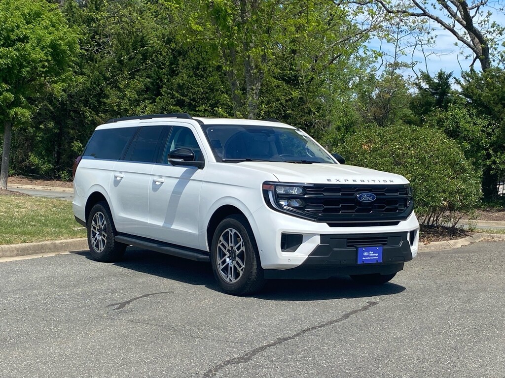 Certified. White Metallic 2025 Ford Expedition Max Active 4WD 10-Speed Automatic EcoBoost 3.5L V6 GTDi DOHC 24V Twin Turbocharged One Owner, Back up Camera, Navigation, Expedition Max Active, 4D Sport Utility, EcoBoost 3.5L V6 GTDi DOHC 24V Twin Turbocharged, 10-Speed Automatic, 4WD, White Metallic, Space Gray Premium Synthetic, 110V/400W AC Power Outlet, 26mm Engine Radiator, 2nd Row Power-Folding 40/20/40 ActiveX Bench Seat, 2nd Row Power-Folding Captain's Chairs, 3.73 Axle Ratio, 360-Degree Zone Lighting, 3rd Row Flexible Seating, 3rd row seats: split-bench, 3rd Row Vinyl Seats, 4-Door Intelligent Access (Lock/Unlock), 4-Wheel Disc Brakes, 6 Speakers, ABS brakes, ActiveX Front Heated Captain's Chairs, Air Conditioning, Alloy wheels, AM/FM radio: SiriusXM with 360L, Apple CarPlay/Android Auto, Auto High-beam Headlights, Auto-dimming Rear-View mirror, Automatic temperature control, BlueCruise Equipped, Brake assist, Bumpers: body-color, Cloth Front Captain's Chairs, Delay-off headlights, Driver door bin, Driver State Detection, Driver vanity mirror, Dual front impact airbags, Dual front side impact airbags, Electronic Stability Control, Emergency communication system: 911 Assist, Equipment Group 202A High Package, Exterior Parking Camera Rear, Flex Powered Console, Ford Split Gate, Four wheel independent suspension, Front anti-roll bar, Front Bucket Seats, Front Center Armrest, Front dual zone A/C, Front License Plate Bracket, Front reading lights, Front Side Laminated Glass, Fully automatic headlights, Heated door mirrors, Heated Steering Wheel, Heavy-Duty Trailer Tow, Illuminated entry, Integrated Trailer Brake Control, Intersection Assist, Low tire pressure warning, Memory Driver Seat, Navigation System, Occupant sensing airbag, Outside temperature display, Overhead airbag, Overhead console, Panic alarm, Passenger vanity mirror, Power door mirrors, Power driver seat, Power Panoramic Vista Roof w/Power Sunshade, Power passenger seat, Power steering, Power Tilt/Telescopic Steering Wheel w/Memory, Power windows, Power-Folding Sideview Mirrors w/Autofold, Radio data system, Radio: AM/FM Stereo w/MP3 Capable, Rain Sensing Wipers, Rear air conditioning, Rear anti-roll bar, Rear reading lights, Rear window defroster, Rear window wiper, Reclining 3rd row seat, Remote keyless entry, SecuriCode Keyless Entry Keypad, Security system, SiriusXM w/360L, Speed control, Speed-sensing steering, Speed-Sensitive Wipers, Split folding rear seat, Spoiler, Steering wheel mounted audio controls, Telescoping steering wheel, Tilt steering wheel, Traction control, Universal Garage Door Opener, USB Ports, Variably intermittent wipers, Wheels: 20" Carbonized Gray Bright Machined Aluminum, Wireless Charging Pad.