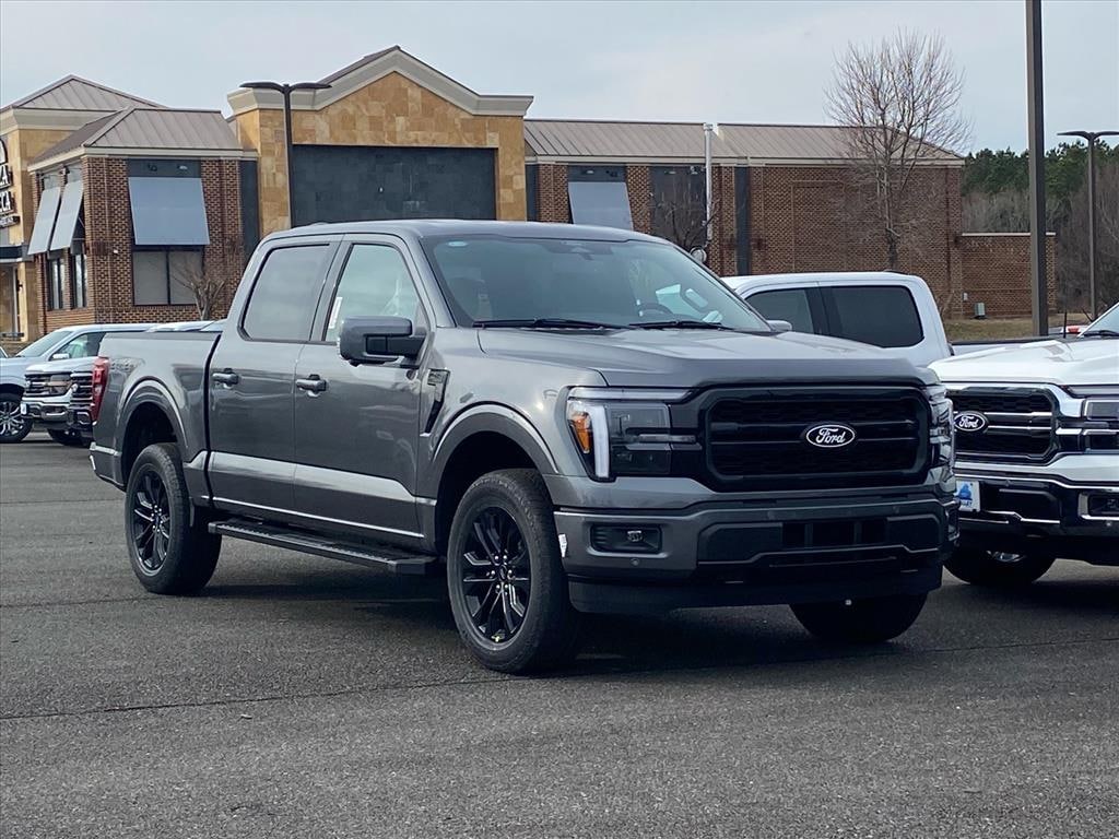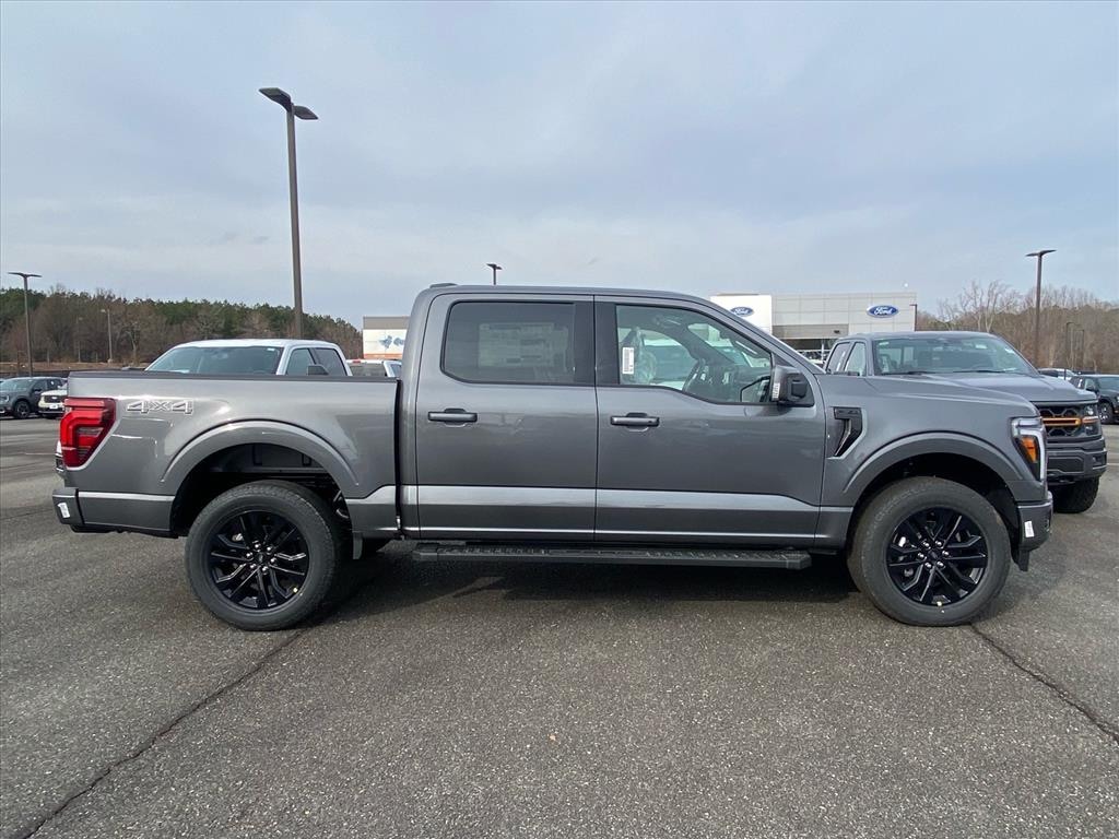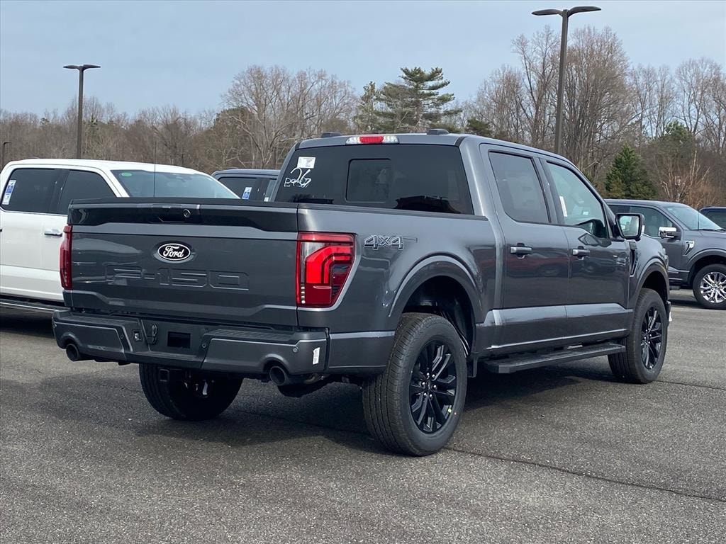 Equipment Group 501A Mid (6" Angular Bright Anodized Step Bar, ActiveX Trimmed Bucket Seats, Illuminated Driver and Passenger Visors, Power-Adjustable Pedals with Memory, Power-Sliding Rear Window, Radio: B&O Sound System by Bang and Olufsen, SYNC 4 with Enhanced Voice Recognition, and Wheels: 20" Chrome-Like PVD), Ford Connectivity Package (1-Year Included), Internet access capable: 5G Modem - Ford Connectivity Package, Lariat Black Appearance Package (Black Exterior Badging, Black Grille, Black Taillamp Bezels, Body-Color Front and Rear Bumpers, Dark Interior Appliques, Gray Box Side Decal, and Matte Black Tailgate F-150 Decal), 4WD, 4-Wheel Disc Brakes, 8 Speakers, ABS brakes, Air Conditioning, Alloy wheels, AM/FM radio: SiriusXM with 360L, Auto High-beam Headlights, Auto-dimming door mirrors, Auto-dimming Rear-View mirror, Automatic temperature control, Brake assist, Bumpers: chrome, Chrome wheels, Compass, Delay-off headlights, Driver door bin, Driver vanity mirror, Driver's Side SecuriCode Keyless-Entry Keypad, Dual front impact airbags, Dual front side impact airbags, Electronic Stability Control, Emergency communication system: SYNC 4 911 Assist, Front anti-roll bar, Front Bucket Seats, Front Center Armrest, Front dual zone A/C, Front fog lights, Front License Plate Bracket, Front reading lights, Front wheel independent suspension, Fully automatic headlights, Garage door transmitter, Heated door mirrors, Heated front seats, Heated steering wheel, Illuminated entry, Low tire pressure warning, Memory seat, Navigation system: Connected Navigation, Occupant sensing airbag, Outside temperature display, Overhead airbag, Overhead console, Panic alarm, Passenger door bin, Passenger vanity mirror, Power door mirrors, Power driver seat, Power passenger seat, Power steering, Power windows, Radio data system, Rain sensing wipers, Rear reading lights, Rear seat center armrest, Rear step bumper, Rear window defroster, Remote keyless entry, Security system, Speed control, Split folding rear seat, Steering wheel mounted audio controls, Tachometer, Telescoping steering wheel, Tilt steering wheel, Traction control, Trip computer, Turn signal indicator mirrors, Variably intermittent wipers, Ventilated front seats, and Wheels: 18" Chrome-Like PVD. Price includes: $2000 - Retail Customer Cash. Exp. 03/31/2026