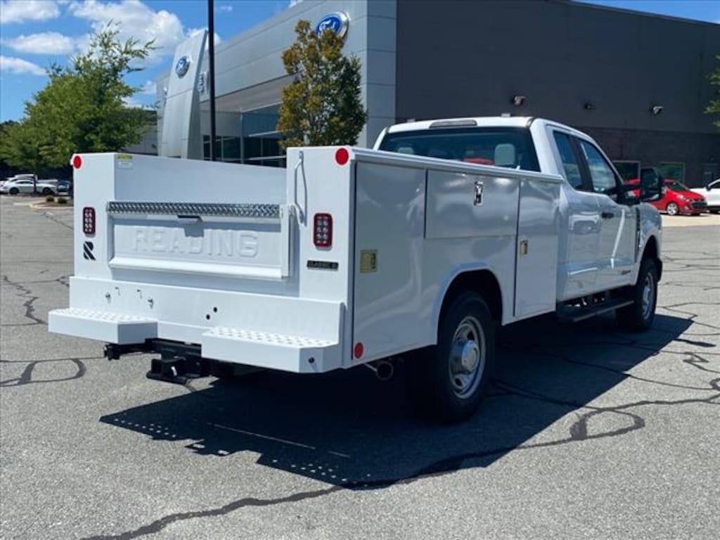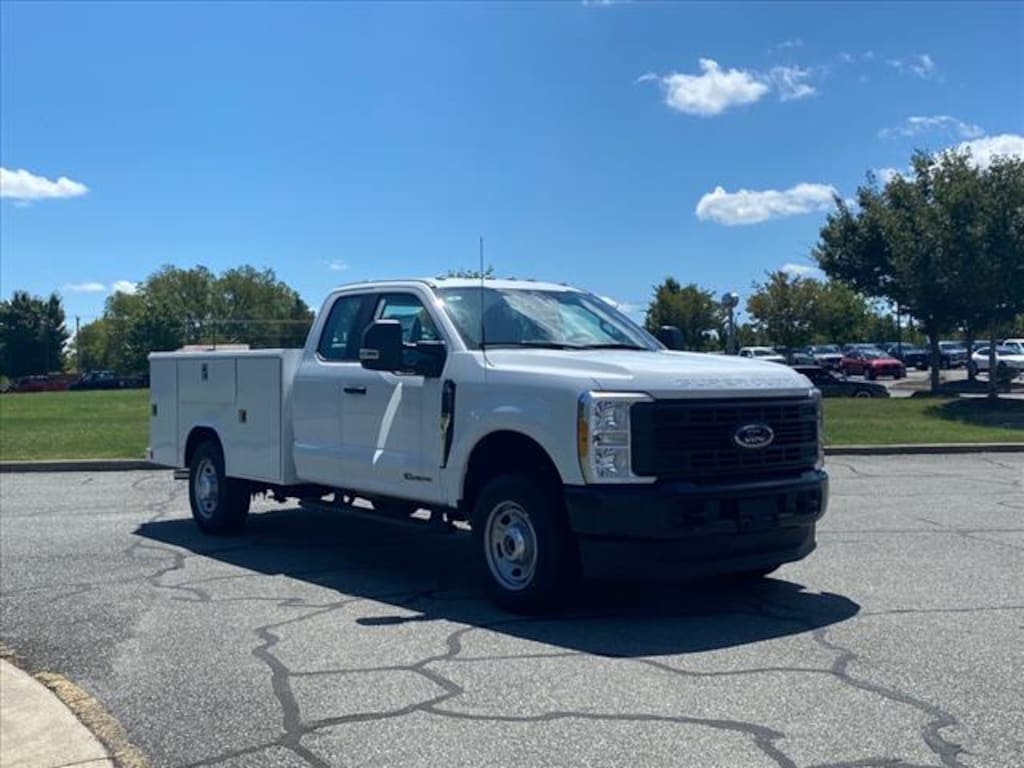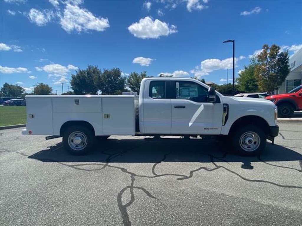 Oxford White 2023 Ford F-350SD XL 162 WB 4WD 10-Speed Automatic Power Stroke 6.7L V8 DI 32V OHV Turbodiesel SERVICE BODY, F-350 SuperDuty XL 162 WB, Super Cab, Power Stroke 6.7L V8 DI 32V OHV Turbodiesel, 10-Speed Automatic, 4WD, Oxford White, Medium Dark Slate Vinyl, 18" Argent Painted Steel Wheels, 4-Wheel Disc Brakes, 6 Speakers, ABS brakes, Air Conditioning, AM/FM radio, Brake assist, Compass, Delay-off headlights, Dual front impact airbags, Dual front side impact airbags, Electronic Stability Control, Electronic-Locking w/4.30 Axle Ratio, Emergency communication system: SYNC 4 911 Assist, Front anti-roll bar, Front Center Armrest w/Storage, Front reading lights, Fully automatic headlights, GVWR: 11,300 lb Payload Package, HD Vinyl 40/20/40 Split Bench Seat, Heated door mirrors, Illuminated entry, Outside temperature display, Overhead airbag, Overhead console, Panic alarm, Passenger cancellable airbag, Passenger vanity mirror, Power door mirrors, Power steering, Power windows, Rear anti-roll bar, Remote keyless entry, Speed control, Split folding rear seat, Steering wheel mounted audio controls, SYNC 4 Communications & Entertainment System, Tachometer, Telescoping steering wheel, Tilt steering wheel, Traction control, Trip computer, Turn signal indicator mirrors, Variably intermittent wipers.