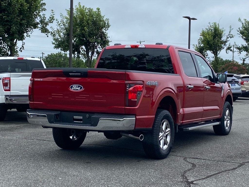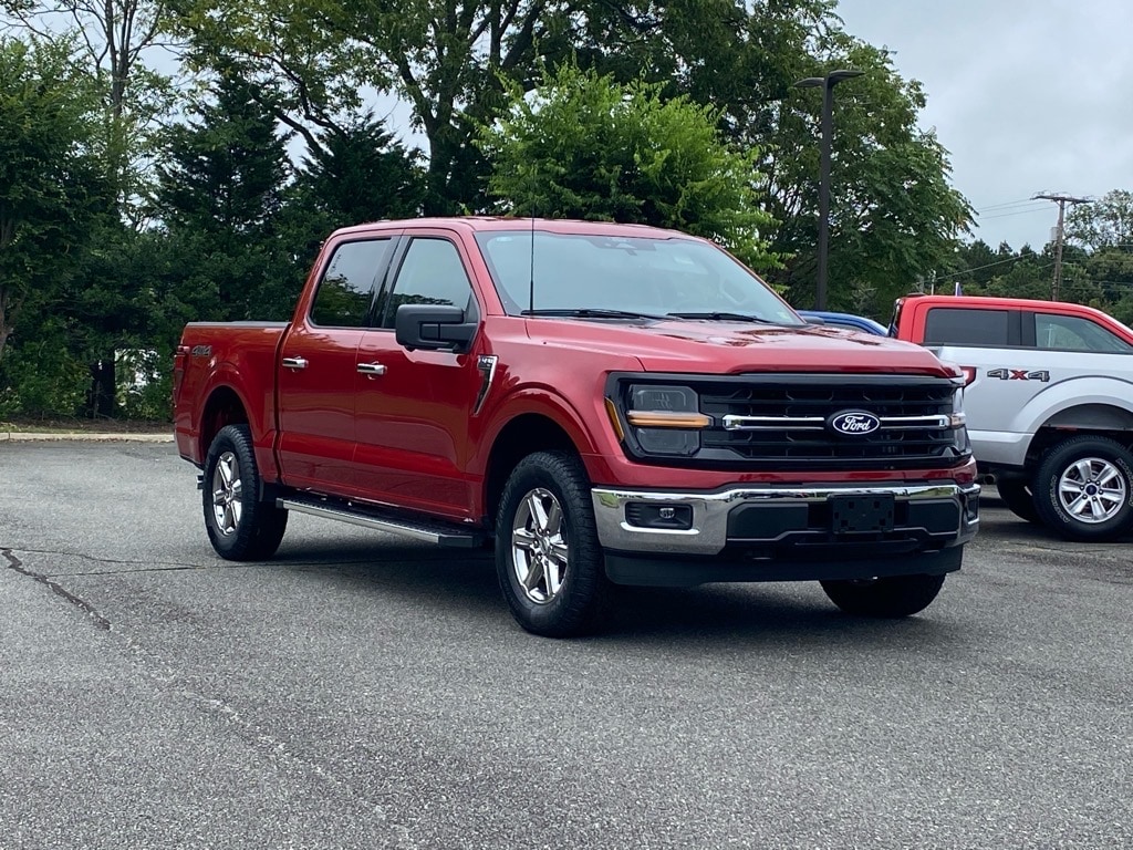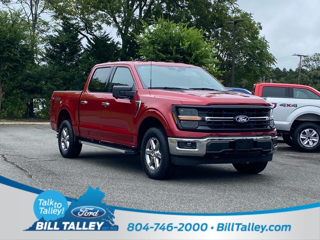 Rapid Red Metallic Tinted Clearcoat 2024 Ford F-150 XLT 4WD 10-Speed Automatic 2.7L V6 EcoBoost F-150 XLT, 4D SuperCrew, 2.7L V6 EcoBoost, 10-Speed Automatic, 4WD, Rapid Red Metallic Tinted Clearcoat, Medium Dark Slate Cloth, 4-Wheel Disc Brakes, 6 Speakers, ABS brakes, Air Conditioning, AM/FM radio: SiriusXM with 360L, Auto High-beam Headlights, Auto-dimming Rear-View mirror, Automatic temperature control, Brake assist, Bumpers: chrome, Chrome wheels, Cloth 40/20/40 Front Seat, Cloth 40/Console/40 Front Seats, Console Worksurface, Delay-off headlights, Driver vanity mirror, Dual front impact airbags, Dual front side impact airbags, Electronic Locking w/3.55 Axle Ratio, Electronic Stability Control, Emergency communication system: SYNC 4 911 Assist, Equipment Group 301A Standard, Front anti-roll bar, Front Center Armrest w/Storage, Front dual zone A/C, Front fog lights, Front reading lights, Front wheel independent suspension, Fully automatic headlights, GVWR: 6,650 lbs Payload Package, Heated door mirrors, Illuminated entry, Low tire pressure warning, Mobile Office Package, Navigation system: Connected Navigation, Occupant sensing airbag, Outside temperature display, Overhead airbag, Overhead console, Panic alarm, Partitioned Lockable Rear Storage, Passenger vanity mirror, Power door mirrors, Power driver seat, Power steering, Power windows, Radio data system, Radio: AM/FM SiriusXM w/360L, Rear reading lights, Rear step bumper, Rear window defroster, Remote keyless entry, Security system, Speed control, Split folding rear seat, Steering wheel mounted audio controls, SYNC 4 w/Enhanced Voice Recognition, Telescoping steering wheel, Tilt steering wheel, Traction control, Variably intermittent wipers, Wheels: 18" Chrome-Like PVD.