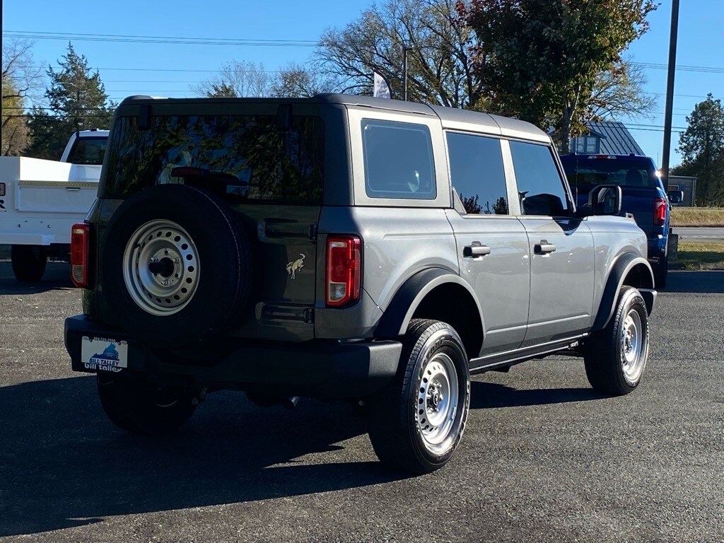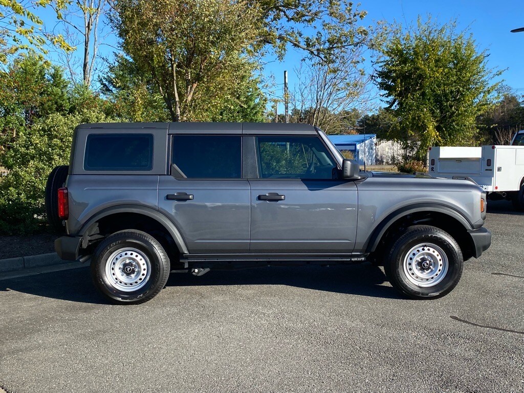 Gray Metallic 2025 Ford Bronco 4WD 10-Speed Automatic 2.3L EcoBoost I-4 Back up Camera, 4D Sport Utility, 2.3L EcoBoost I-4, 10-Speed Automatic, 4WD, Gray Metallic, Dark Gray W/Black Onyx Cloth, 4-Wheel Disc Brakes, 4.46 Axle Ratio, 7 Speakers, ABS brakes, Air Conditioning, AM/FM radio: SiriusXM with 360L, AM/FM Stereo, Auto High-beam Headlights, Brake assist, Carbonized Gray Molded-In-Color Hard Top, Cloth Bucket Seats, Delay-off headlights, Driver vanity mirror, Dual front impact airbags, Dual front side impact airbags, Electronic Stability Control, Emergency communication system: 911 Assist, Equipment Group 101A, Exterior Parking Camera Rear, Front anti-roll bar, Front Bucket Seats, Front Center Armrest, Front reading lights, Front wheel independent suspension, Fully automatic headlights, Heated door mirrors, Illuminated entry, Integrated roll-over protection, Low tire pressure warning, Occupant sensing airbag, Overhead airbag, Overhead console, Panic alarm, Passenger vanity mirror, Power door mirrors, Power steering, Power windows, Radio data system, Rear-Window Defroster & Washer, Remote keyless entry, Security system, SiriusXM w/360L, Speed control, Split folding rear seat, Steering wheel mounted audio controls, SYNC 4, Telescoping steering wheel, Tilt steering wheel, Traction control, Variably intermittent wipers, Wheels: 16" Bright Polished Silver-Painted Steel.