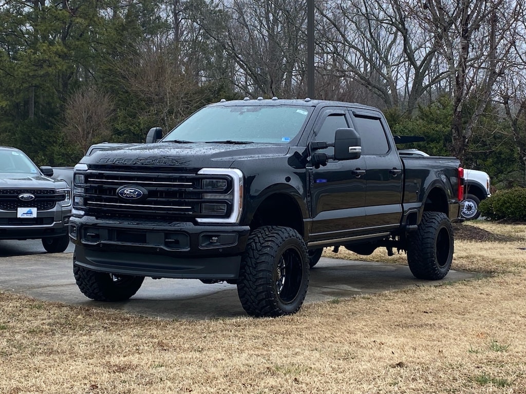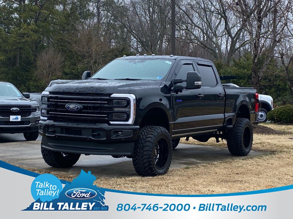 Black Metallic 2025 Ford F-250SD Platinum 4WD 10-Speed Automatic 6.7L High Output Power Stroke V8 Diesel One Owner, Back up Camera, Navigation, Push button start, F-250SD Platinum, 4D Crew Cab, 6.7L High Output Power Stroke V8 Diesel, 10-Speed Automatic, 4WD, Black Metallic, Black Onyx/Platinum Blue Leather, 14 Speakers, 3.73 Axle Ratio, 4-Wheel Disc Brakes, 410 Amp Dual Alternators, ABS brakes, Adjustable pedals, Air Conditioning, Alloy wheels, AM/FM radio: SiriusXM with 360L, Auto High-beam Headlights, Auto tilt-away steering wheel, Auto-dimming Rear-View mirror, Automatic temperature control, Brake assist, Bumpers: body-color, Delay-off headlights, Driver door bin, Driver vanity mirror, Dual front impact airbags, Dual front side impact airbags, Electronic Stability Control, Emergency communication system: SYNC 4 911 Assist, Flow-Through Console, Front and Rear Wheel Well Liners, Front anti-roll bar, Front Bucket Seats, Front Center Armrest, Front dual zone A/C, Front fog lights, Front reading lights, Fully automatic headlights, Garage door transmitter, GVWR: F-250 >10K Package, Heads-Up Display, Heated door mirrors, Heated front seats, Heated rear seats, Heated steering wheel, High Capacity 11.6" Axle Upgrade Package, Internet access capable: FordPass Connect 5G, LED Roof Clearance Lights, Low tire pressure warning, Max Recline Seats, Memory seat, Navigation System, Order Code 703A, Outside temperature display, Overhead airbag, Overhead console, Panic alarm, Passenger vanity mirror, Pedal memory, Power door mirrors, Power driver seat, Power passenger seat, Power steering, Power windows, Radio: B&O Unleashed Sound System by Bang & Olufsen, Rain sensing wipers, Rear reading lights, Rear seat center armrest, Rear step bumper, Rear window defroster, Remote keyless entry, Security system, SiriusXM Radio with 360L, Speed control, Split folding rear seat, Steering wheel memory, Steering wheel mounted A/C controls, Steering wheel mounted audio controls, SYNC 4 with Enhanced Voice Recognition, Telescoping steering wheel, Tilt steering wheel, Tough Bed Spray-in Bedliner, Traction control, Turn signal indicator mirrors, Unique Platinum Leather 40/Console/40 Seats, Variably intermittent wipers, Ventilated front seats, Wheels: 20" Bright Machined and Painted Aluminum.